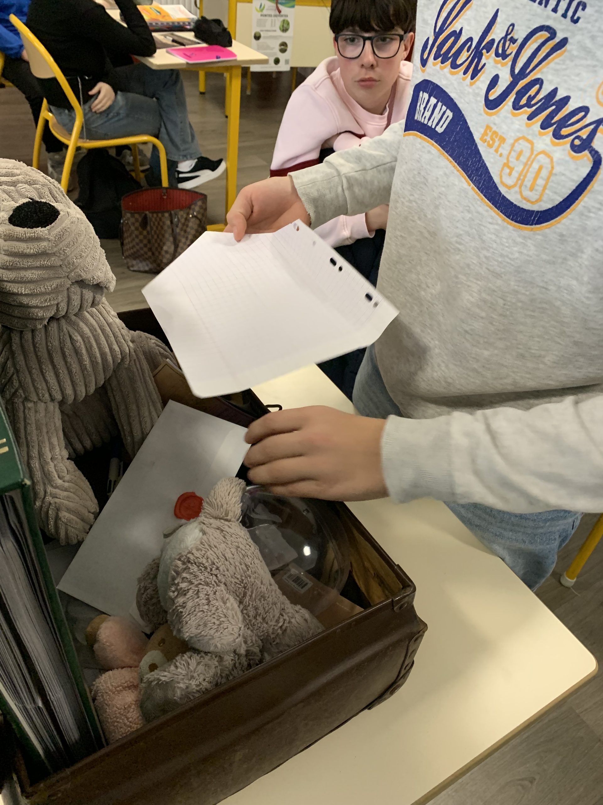 Il y a trois semaines, une mystérieuse valise est apparue en salle 2.4 chez les 31… Intrigante, fermée, pleine de promesses…pourquoi cet objet insolite en classe ?