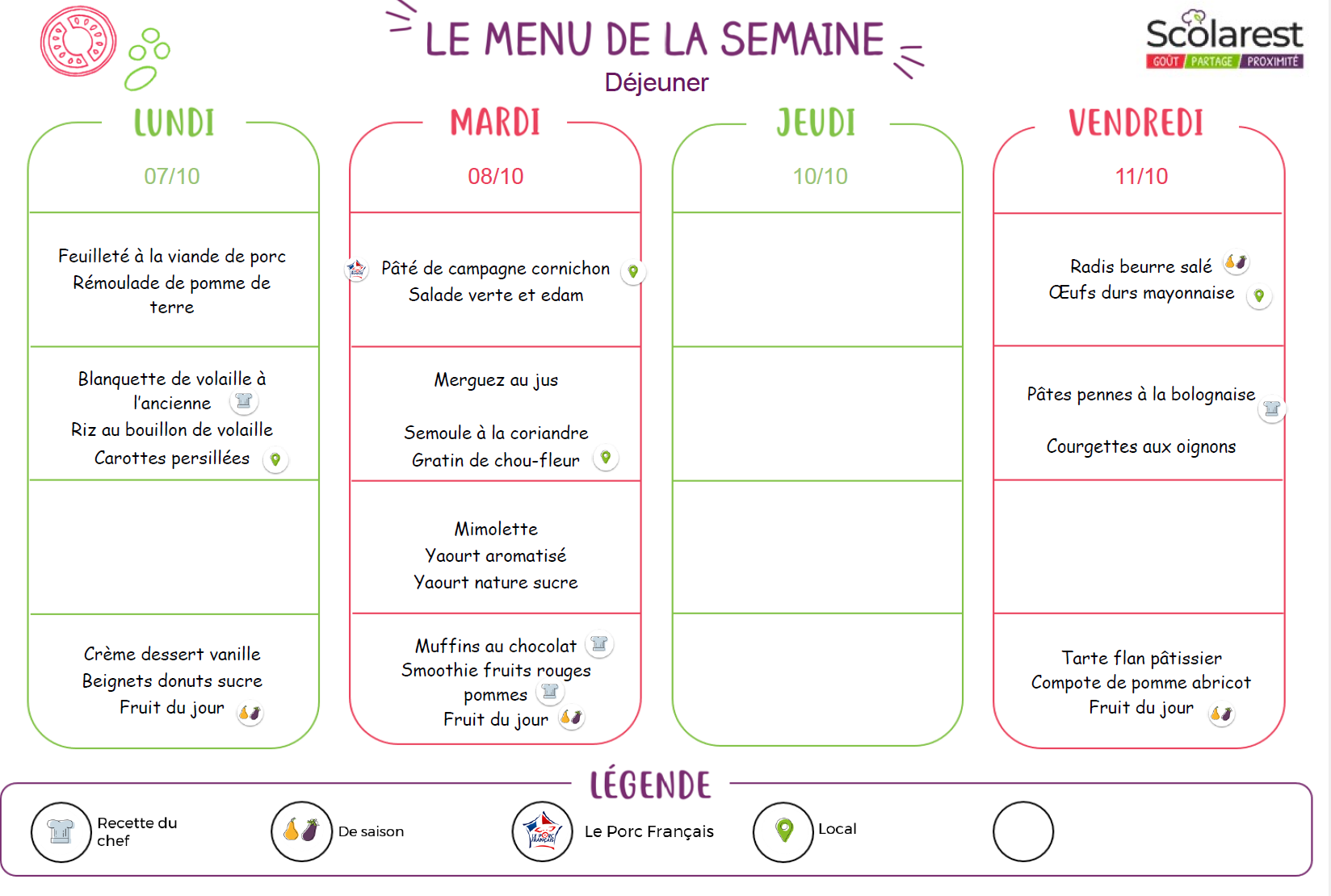 Menu du 7 au 11 Octobre
